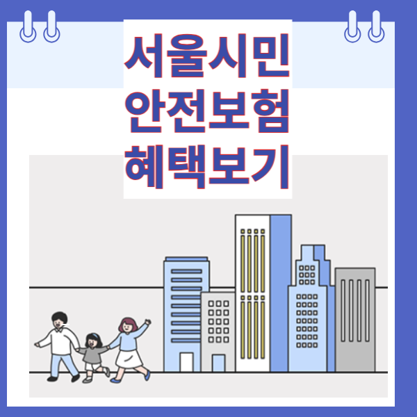 이 그래픽은 서울 시민 안전보험 프로그램을 홍보하는 내용을 담고 있으며, 모든 서울 시민이 이 보험의 혜택을 받을 수 있음을 강조하고 있습니다.